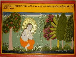 | Description / विवरण | Miniature painting based on Sanskrit drama - Prabodh Chandrodaya depicting Mahadev in sitting position in the garden. It is an incomplete painting. |