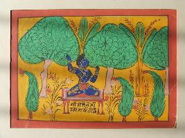 | Description / विवरण | It is a painting in which Nasketu ji is shown sitted on a platform, in padmasana, while at the back trees are painted. |