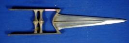 | Description / विवरण | Katar having straight blade with groove. The handle is U shape with bhoglis having embossed floral designs. |