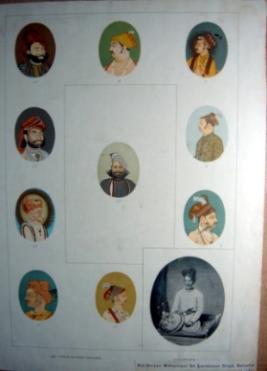 | Description / विवरण | Coloured print of bust size portraits of eleven rulers of Deolia in the same paper. |