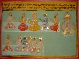 | Description / विवरण | Miniature painting based on Mahabharat - Drona parva. Brahma has given Gandiv to Arjun, Vishnu has given his bow to Nakula, Ashvini Kumar has given his bow to Sahdev, Ravan has given his bow to Ghatotkacha and the bows of Mahadev, Agni, Yam Kuber and Angiraare given to the five sons o fDraupadi. |
