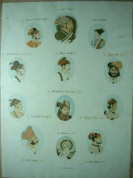 | Description / विवरण | Coloured print of bust size portraits of twelve rulers printed together. |
