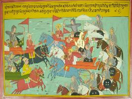 | Description / विवरण | Miniature painting based on Mahabharat - Daona parva.It is depicting. Dristrdum is the commander of his army and he is depicted leading the army. |