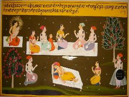 | Description / विवरण | Miniature painting based on Sanskrit drama - Prabodh Chandrodaya depicting a king on the top right corner of the painting. He says that, when Ahankar combines with soul, then pride is born. |
