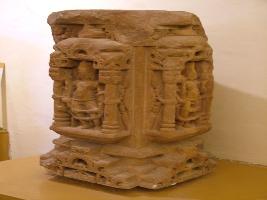 | Description / विवरण | It is an architectural piece on which image of Vayu in front and Varuna in lateral side have been carved out. Both images are executed within temple like niches. On the lower portion of the images. Floral designs with the help of carving work have been carried out. Whole piece has weather effect. Faces of the images have been discerned due to deteriorated condition. Both images are in standing mode. |