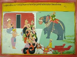 | Description / विवरण | Miniature painting based on Mahabharat - Udyam parva depicting Duryodhan appoints many senapati in his cavalry army and defines their duties. |