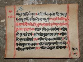 | Description / विवरण | It is a Gokula octagonal manuscript. It had been fully damaged teared. |