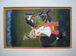 | Description / विवरण | Prince riding black horse with painted hoops and neck in red and green respectively. He is wearing white jama and white turban with black cloth. In background a cloudy sky is depicted |