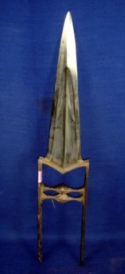 | Description / विवरण | Katar Dagger made of faulad having two long grooves on the blade. The handle is M shape with two bhoglis. |