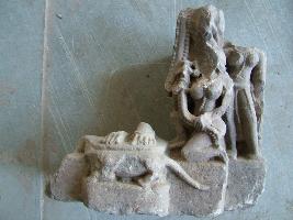 | Description / विवरण | It is a sculpture of two female in tribhang posture. Necklace is shown in neck both female . Two feet are also shown, rest broken. |