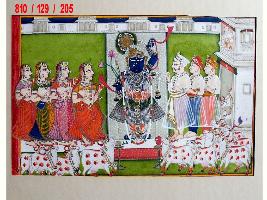 | Description / विवरण | It is a painting in which lord Jagannath or Jagdish is shown within a temple alongwith his devotees while background in yellow the whole painting is painted in round. |