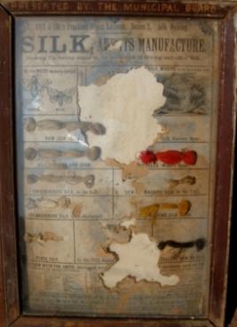 | Description / विवरण | Specimens of silk and showing the various stages in the production of sewing and other silk, kept in glass and wooden frame. |