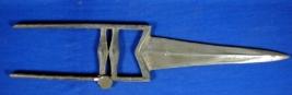 | Description / विवरण | Katar Dagger having straight blade with grooves. The handle is M shape with two bhoglis. |