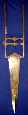 | Description / विवरण | Iron Katar dagger with straight blade and M shape handle with two bhoglis. |