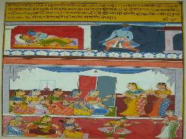 | Description / विवरण | Miniature painting based on Rasikpriya depicting the Nayaka sneaking to the room of the Nayika and the Nayaka and Nayika in loving union. While in the middle part of the painting depicts other ladies enjoying with the performance of some musicians and dancers. |