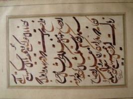 | Description / विवरण | It is written by Amir Baksh in 1251 Hijri and deals with Persian language alphabets. This epithet is written with in golden and floral motifs decorated sheet. It is written in brown colour ink. |