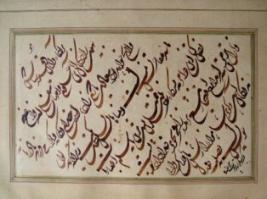 | Description / विवरण | This epithet is written by Amir Baksh in 1251 Hijri. It deals with Persian alphabets. it used for brown colour ink is used on white and floral decorated Background. |