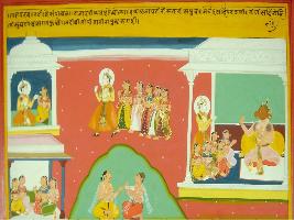 | Description / विवरण | Miniature painting based on Mahabharat - Gada parva depicting Vaishpayana is telling Parikshit that Chandrama has married 27 daughters of Dakshya prajapati among whom he deeply fall in love with Rohini. |