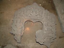 | Description / विवरण | It is a upper halo of Surya, decorated with top sculpture of seated Surya holding lotus in both arm and two Vishnu sculpture in twiside at the base and a broken head of female. |