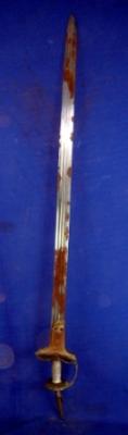 | Description / विवरण | Iron Katti Sword having straight blade with two grooves nali and hilt with broad knuckle guard. The koft work is almost completely rubbed out. The blade is rusted. |