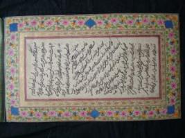 | Description / विवरण | It is a handwritten by Meer Ali. its deals about prays for a long life for himself. epithet written in brown colour ink on white sheet. It is decorated with a floral designed border. |