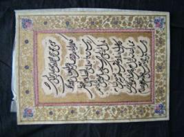 | Description / विवरण | White and golden colour ink is used on blue colour Background. It is written in Persian language. It has a lining border with golden floral design. |