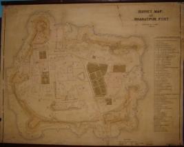 | Description / विवरण | Survey map of Bharatpur fort depicting numbering of buildings and allocation of units. The scale is foot-inch. It was made in 1915. |