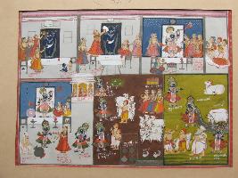 | Description / विवरण | It is a painting of Srinathji with Krishna in amusement form. Cows, tree, males etc. is shown in this scenary. Most of scenary had related to village scene. |