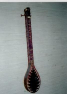| Description / विवरण | This is a tumba, a part of a round base support of a veena, in the shape of a guava, having a big hole at the bottom with raised arched petal shaped decoration all around the hole and the same kind of decoration around its neck and upper body. It is hollow from the inside. At the top it has a narrow hole and a flared rim. |