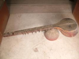 | Description / विवरण | This is a tumba which is part of double round base support of a veena, in the shape of a pumpkin, golden in colour, having a small hole at the bottom and a bigger at the bottom. Without any decorations. Hollow from inside. |