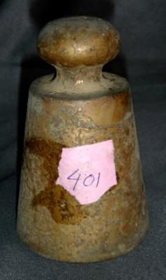 | Description / विवरण | Brass weight of 1 ser, conical in shape with high circular knob. |