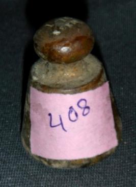 | Description / विवरण | Brass weight of 1 16 ser, conical in shape with a circular knob. |