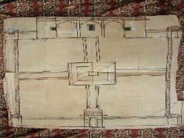 | Description / विवरण | It is a lay plan of a temple,shown with a central sanctum and four bide wall in form of fort having top cusp arch in three. |