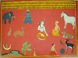 | Description / विवरण | Miniature painting based on Eklinga Mahatmya. It is an incomplete painting. It depicts Vayu telling about Buda incarnation of Vishnu. Then he asks Shiv to produce Astamurti for the illumination of the world. |