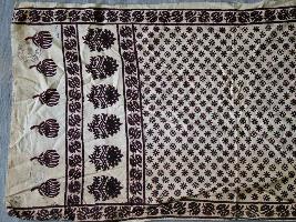 | Description / विवरण | Towel of white cotton. Printed black circular flowers, black print on borders and pallu. |