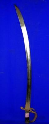 | Description / विवरण | Iron Kirch having slightly curved blade with grooves and chinkedar hilt padded with leather. |