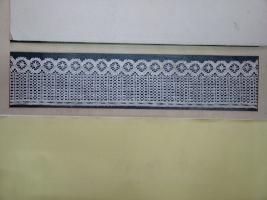 | Description / विवरण | This is a Nottingham machine made lace, in which three types of motif is depicted. The top motif is plain net of a thin band, the middle one is long, vertically arranged net of which the lower part is pointed. The bottom motif is circular floral motif. |