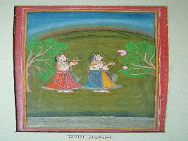 | Description / विवरण | It is a painting of two worshipping female friends marched for love purpose. Two plants are shown in foreground and background. River is shown. |