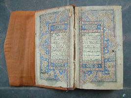 | Description / विवरण | It is a holy book of Muslim community Kuran-Majid decorated with calligraphic work with round golden decoration between the lines. |
