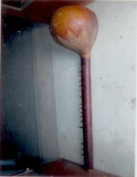| Description / विवरण | A tumba, a part of pumpkin shaped base supports veena, hollow from inside, red in colour with a knob at the top having a small hole and a raised arched petal shaped decoration at the upper part. It has another hole at the bottom, performed with petal leaf cuts. |