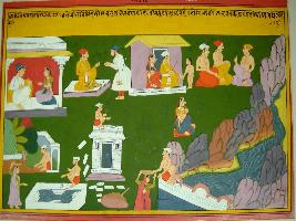 | Description / विवरण | Miniature painting based on Eklinga Mahatmya depicting a king talking to his wife and on the top the king has ordered his minister to construct a tank, many labour are engaged in constructing a tank. |