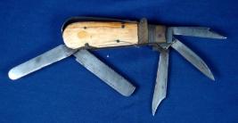 | Description / विवरण | Swiss knife having four single edged blades of different shapes and an Aradam blade. The hilt is made of brass and ivory. |