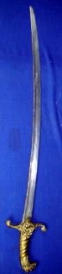 | Description / विवरण | Simple single edged sword having lion head design hilt of brass. |