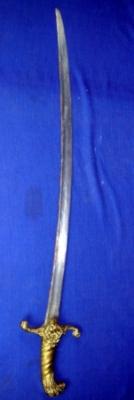| Description / विवरण | Simple single edged sword having lion head design hilt of brass. |