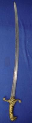 | Description / विवरण | Simple single edged sword having lion head shape hilt of brass. |