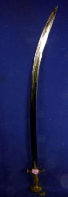 | Description / विवरण | Sword with slightly curved blade and Alamgiri hilt with decoration of golden koft work. |