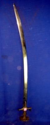 | Description / विवरण | Iron sword having curved blade and hilt with floral koft work. The blade tip is slightly bent. |