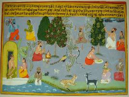 | Description / विवरण | Miniature painting based on Eklinga Mahatmya depicting how to worship Eklinga ji by taking bath, thinking about God, serving to the husband and being honest to all animals. These things are being told by Narad to Vayu. |