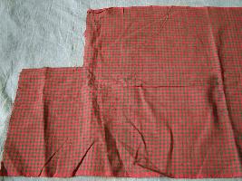 | Description / विवरण | Piece of handloom with red and green checks, cotton fabric. The piece has been partly cut from one side. |