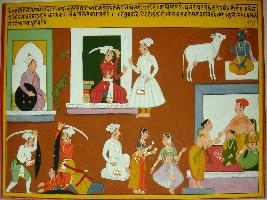 | Description / विवरण | Miniature painting based on Eklinga Mahatmya depicting Krishna telling to Prithvi that one who does his work with satisfaction and diligently would surely get Bhog and satisfaction. |